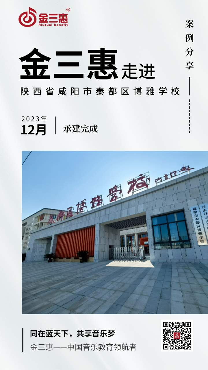 2023年12月,金三惠數字音樂教室走進陜西省咸陽市秦都區博雅學校,為學校提供了4間數字音樂教室,3間舞蹈教室,1間鼓號隊。新常態教室-金三惠 (jinsanhui.com)