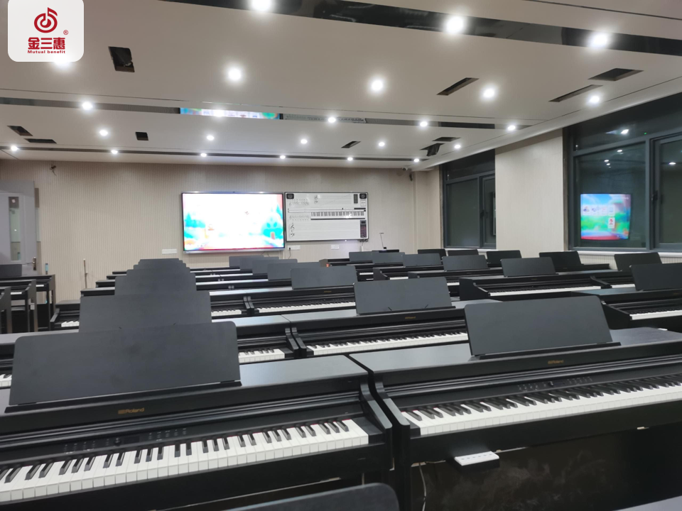 2024年1月,金三惠數字音樂教室走進河南省平頂山市葉縣中等專業學校,為學校提供了54+1的電鋼琴教室配備了金三惠電鋼琴教學系統、電鋼琴、數字音樂教學儀等教學教具等。