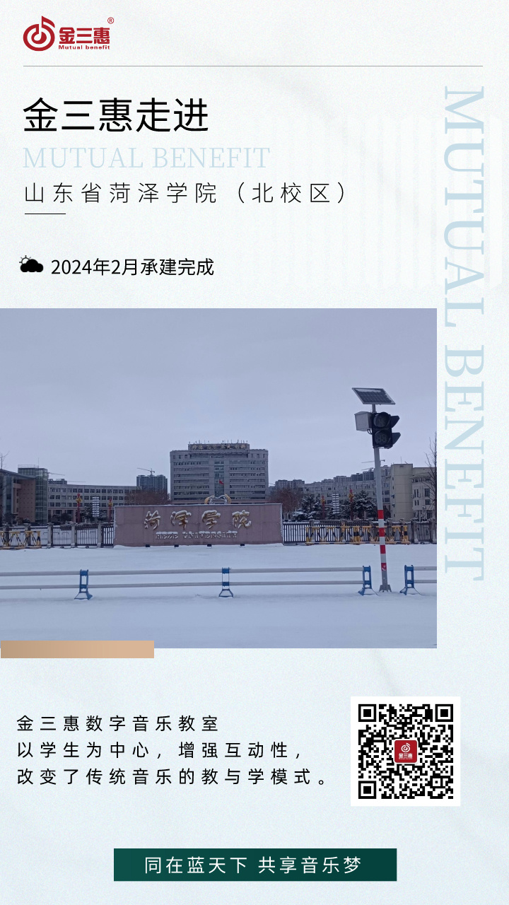 2024年2月,金三惠數字音樂教室為山東省菏澤學院(北校區)提供、安裝、培訓的50+1智慧音樂素養教室正式開始使用!配備了金三惠教學系統、電鋼琴、數字音樂教學儀等教學教具。創客教室-金三惠 (jinsanhui.com)
