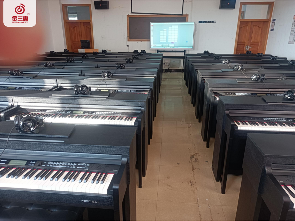 2024年5月,金三惠數字音樂教室云南省保山學院,為學校提供了44+1的電鋼琴教室,配備了金三惠電鋼琴教學系統、電鋼琴、數字音樂教學儀等教學教具等。