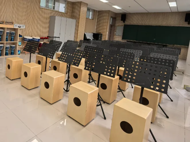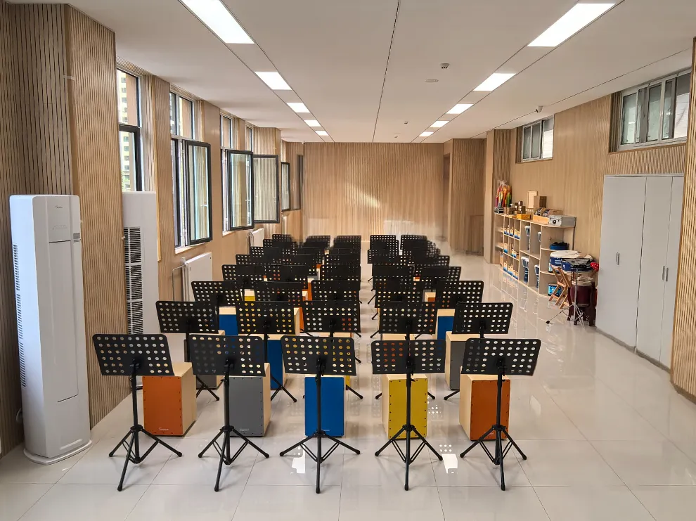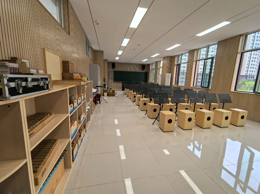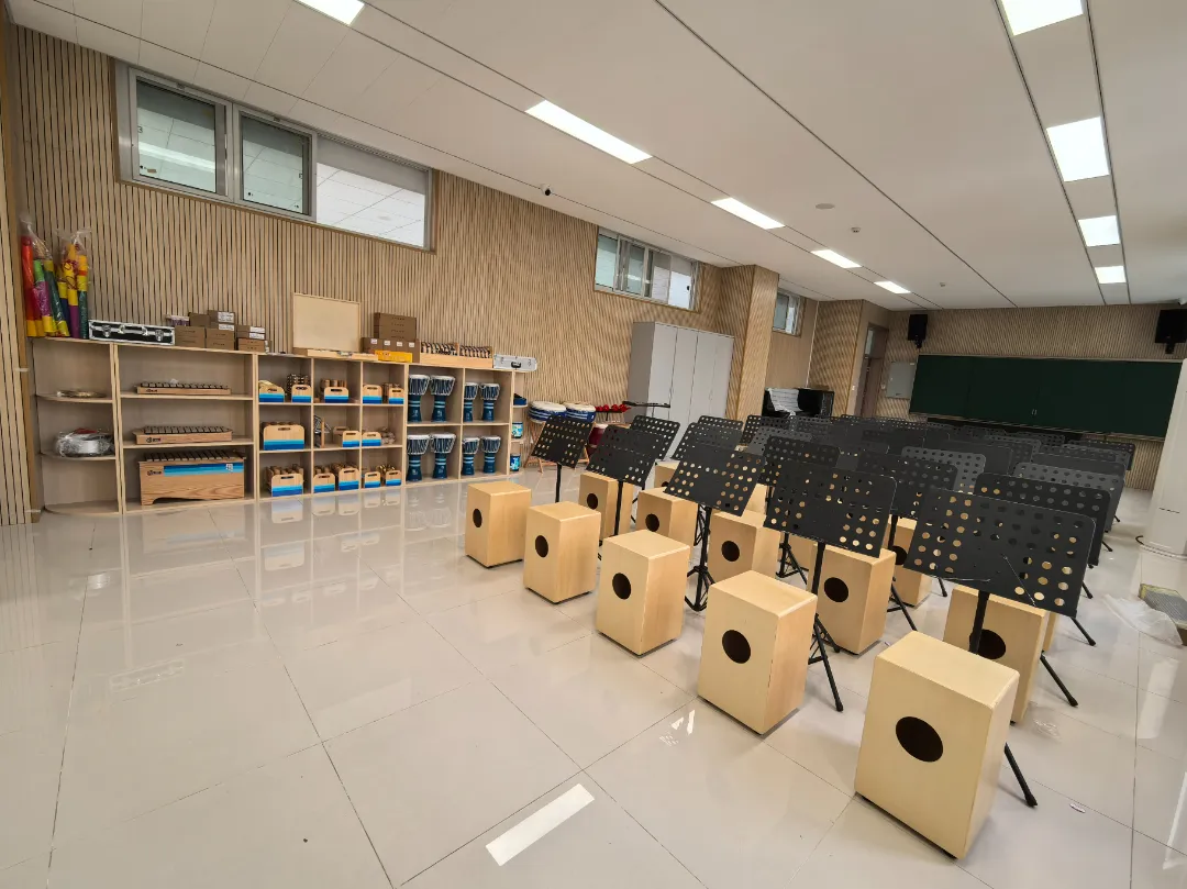 教室滿(mǎn)足中小學(xué)音樂(lè)與唱游課程教學(xué)要求,配備多種樂(lè)器、教具、課程資源等,能夠滿(mǎn)足學(xué)生聆聽(tīng)、欣賞、演奏、創(chuàng)作、排練的需求,培養(yǎng)學(xué)生的創(chuàng)造力、自信心、專(zhuān)注性、合作精神、反應(yīng)能力及全面人格發(fā)展,享受音樂(lè)帶來(lái)的快樂(lè)。