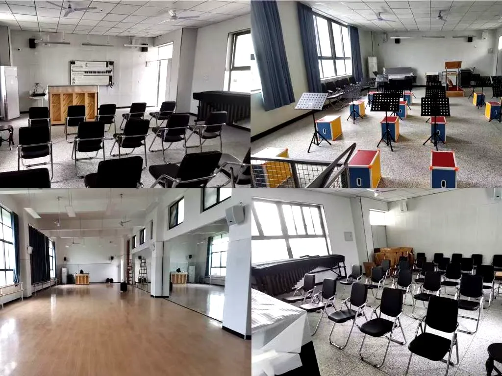 舞蹈教室是藝術教學中進行形體訓舞蹈排練的專業場所。金三惠舞蹈教室配備了把桿、練功磚、瑜伽墊、瑜伽球等專業舞蹈設施以及高檔音箱設備,這些設備性能穩定可靠,效果震撼,可完全滿足舞蹈音樂伴奏的需求。教室引入了數字音樂平臺,可實現錄制、反復播放任意一段音樂、播放舞蹈視頻等所有相關的項目,方便學生學習和排練。