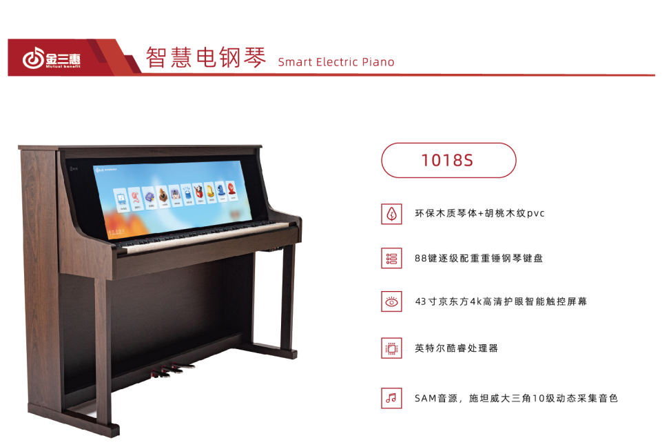 智慧電鋼琴1018C:采用21.5寸顯示屏,主要配置1018S相同,具有良好的兼容性,可定制裝配,是追求性能的性價比之選。