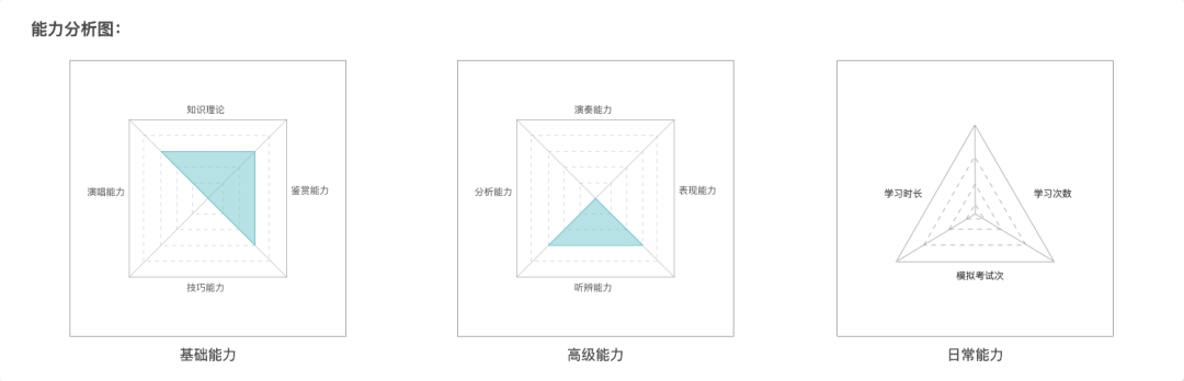 音樂是抽象藝術,平臺通過數字化的功能,將音樂考試形成標準化測評報告,測評學生音樂基礎、高級、日常能力。