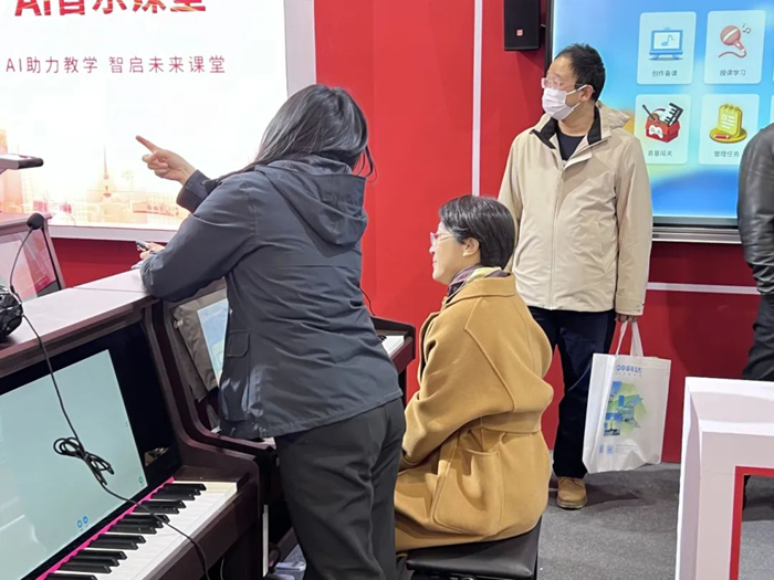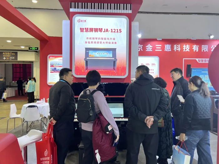 展會現場,金三惠的工作人員耐心地為每一位參觀者講解產品的特點與優勢,參觀者紛紛拿出手機拍照記錄,現場體驗了自動演奏鋼琴、數字音樂教學平臺等產品,感受到了科技與音樂教育結合的無限可能。