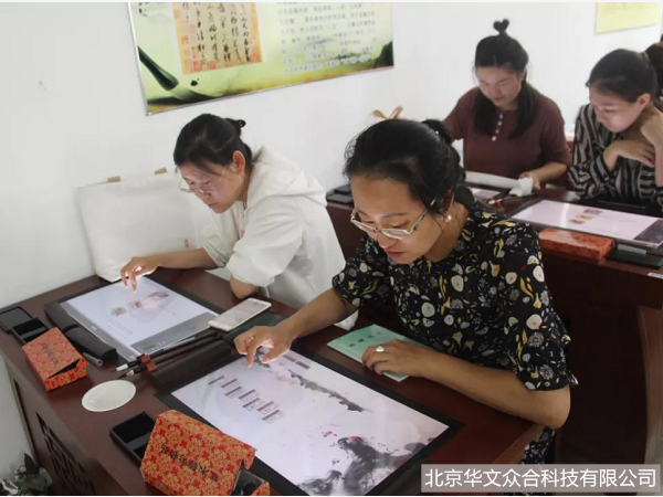 硬件方面,華文眾合歷時四年成功研制出交互式數字臨摹臺,解決了書法臨摹方面的難題,在臨摹臺上鋪上宣紙就可以用毛筆、墨汁高清臨摹任意字帖和歷代書法家真跡,既降低了書法學習門檻,又可以幫助學生建立書法學習的自信心和自豪感。