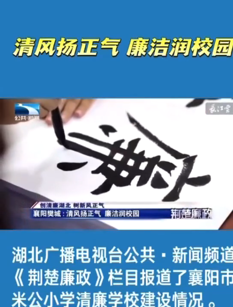 書法是襄陽市米公小學(xué)的傳統(tǒng)優(yōu)勢(shì)課程,在清廉學(xué)校建設(shè)中,米公小學(xué)利用西鄰宋代大書畫家米芾故里米公祠的地理優(yōu)勢(shì),把“培育民族精神,弘揚(yáng)書法藝術(shù)”作為辦學(xué)特色,在師生中開展形式多樣的書法教育活動(dòng),逐漸形成了“翰墨飄香、書法繪廉”的獨(dú)特品牌。