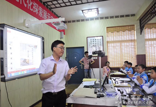 數字書法教學系統簡潔大方的軟件設計、翔實豐富的課程資源在每一位學生的臨摹臺上清晰顯示。通過軟硬件設備實現了書寫示范的高清同步傳播,讓學生近距離、多角度觀看例字的書寫示范和講解。利用字帖排版系統將例字進行排版推送到每一個數字臨摹臺進行臨摹練習,通過直播系統對學生作品進行點評,每一位學生都能夠看到老師點評同學的作品。體現了書法教育走向現代化的優勢,得到了武漢市教科院小學教學研究室羅昆霞主任的高度贊揚。