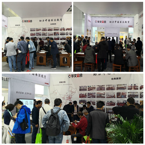 2018年10月31日,北京華文眾合科技有限公司攜最新一代智慧書法教室,隆重亮相第四屆湖北省教育裝備展示會。展會現場前來體驗智慧書法教室的觀眾絡繹不絕,紛紛表示出極大的興趣。