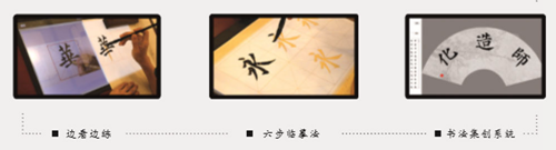 臨摹,是學(xué)好書法的重要途徑。華文眾合將獨創(chuàng)的交互式數(shù)字臨摹臺應(yīng)用于書法教學(xué)之中;推出邊看邊練、六步臨摹法和集字創(chuàng)作等臨摹方式,讓學(xué)生通過不同的練習(xí),保障書法學(xué)習(xí)效果。
