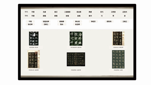 此外,智慧書法教室系統(tǒng)內(nèi)置從先秦、秦漢、魏晉、南北朝、隋唐五代、宋、元、明、清到近現(xiàn)代的碑帖和字帖資源,最大程度滿足學(xué)生的臨摹需求之外,可以拓寬學(xué)生的視野,陶冶學(xué)生的情操,更好地推動傳統(tǒng)書法文化的繼承和發(fā)展。