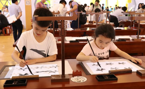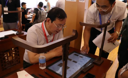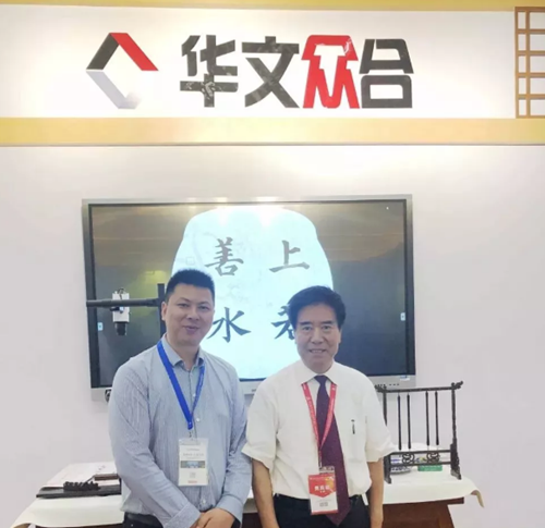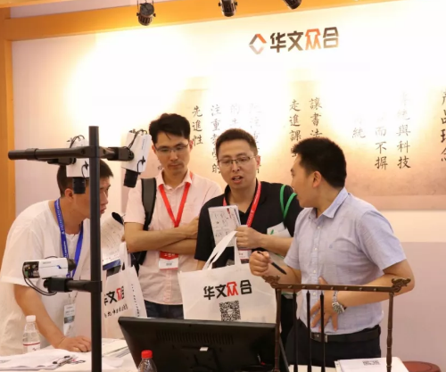 華文眾合此次展出的新產品——第五代智慧書法教室充滿古韻,同時又不失現(xiàn)代科技感,深受廣大觀眾喜愛。