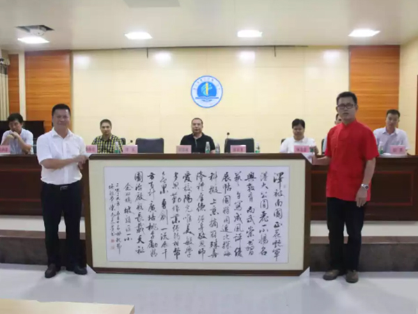 接著,陳尚來老師向學校贈送書法作品,稱贊學校的書香文化氛圍濃厚,對書法午練非常支持。