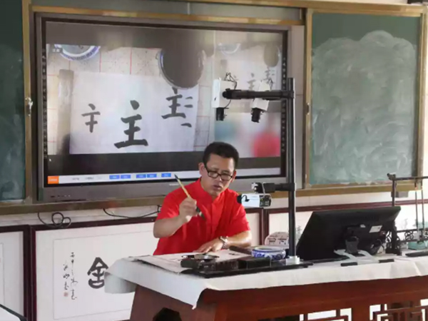 課上老師和學生們用到的教室是由華文眾合定制的智慧書法教室。據悉,華文眾合經過不斷創新、反復糾錯、多次升級,智慧書法教室這一專利產品已經打磨至第五代,這也印證著華文眾合“做有靈魂的教育,做有匠心的產品”的初心。