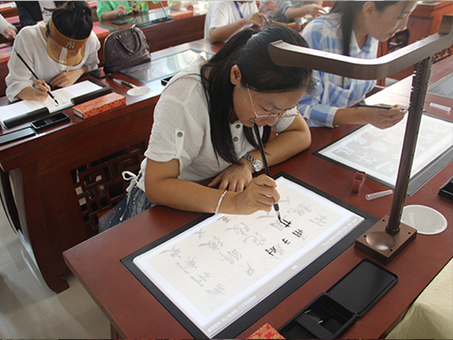 硬件方面,華文眾合歷時四年成功研制出交互式數字臨摹臺,解決了書法臨摹方面的難題,在臨摹臺上鋪上宣紙就可以用毛筆、墨汁高清臨摹任意字帖和歷代書法家真跡,既降低了書法學習門檻,又可以幫助學生建立書法學習的自信心和自豪感。
