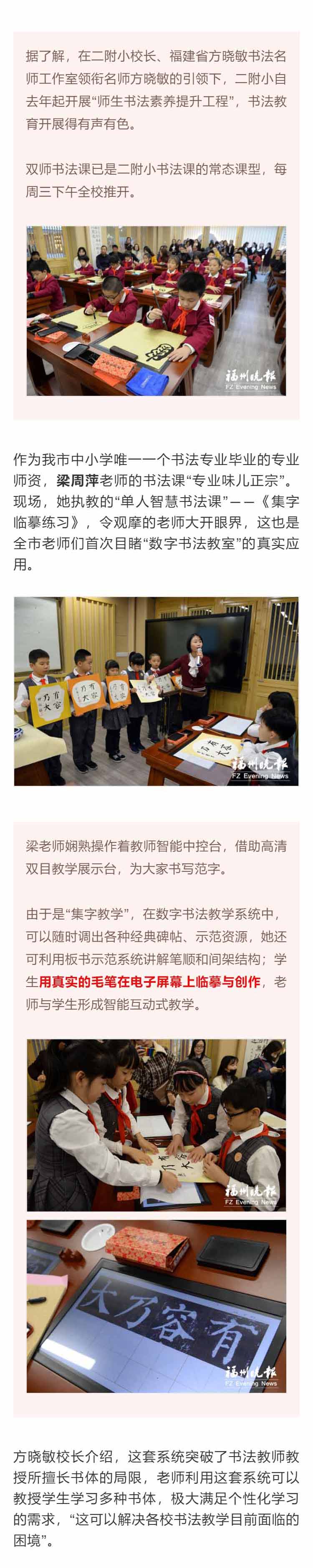 華文眾合智慧書法教室落戶福州教育學院附屬第二小學,近日獲《福州晚報》特別報道,原文如下: