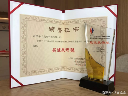 日前,華文眾合攜智慧書法教室亮相第二十二屆中國北京國際科技產業博覽會,在展會中產品形態獨特、功能豐富,深受觀眾喜愛,榮獲最佳展示獎。近日,證書與獎杯出爐!