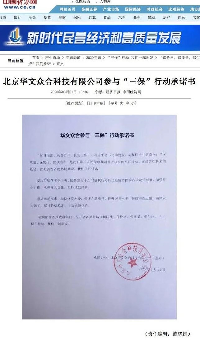 近日,市場(chǎng)監(jiān)管總局通過(guò)視頻會(huì)議啟動(dòng)“保價(jià)格、保質(zhì)量、保供應(yīng)”系列行動(dòng)(以下簡(jiǎn)稱“三保行動(dòng)”),希望企業(yè)要把對(duì)社會(huì)的莊嚴(yán)承諾兌現(xiàn)為實(shí)際行動(dòng),“言必信、行必果”,始終把責(zé)任挺在最前面。“三保行動(dòng)”啟動(dòng)以來(lái),阿里巴巴、伊利集團(tuán)、今日頭條、納愛斯、稻香村、華文眾合等眾多富有責(zé)任心的企業(yè),積極響應(yīng)“三保行動(dòng)”,安全、有序、分批組織復(fù)工,加快恢復(fù)產(chǎn)能,維護(hù)市場(chǎng)穩(wěn)定,齊心協(xié)力,為疫情之戰(zhàn)保駕護(hù)航。