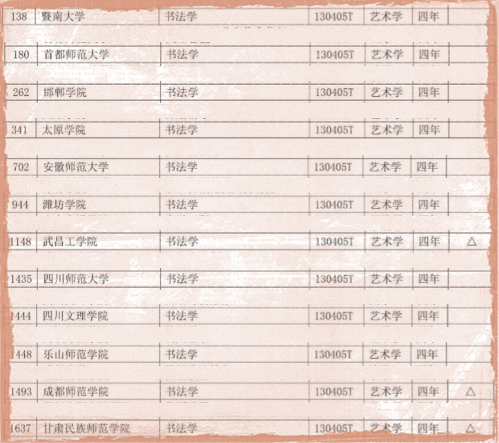 這12所學(xué)校基本涵蓋了華北、華中、華南、西南、西北等地區(qū),其中四川省最是來勢洶洶,一口氣來了四所大學(xué)都上了書法學(xué)。