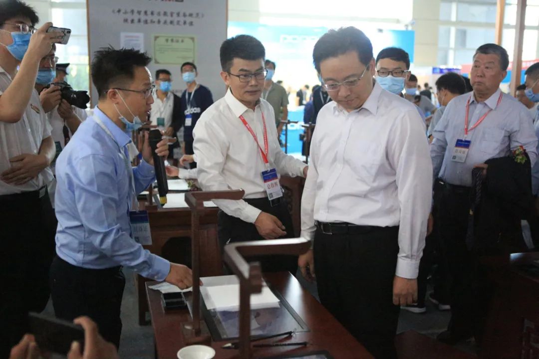 ▲山東省煙臺市委副書記、市長陳飛蒞臨華文眾合展位指導(dǎo)