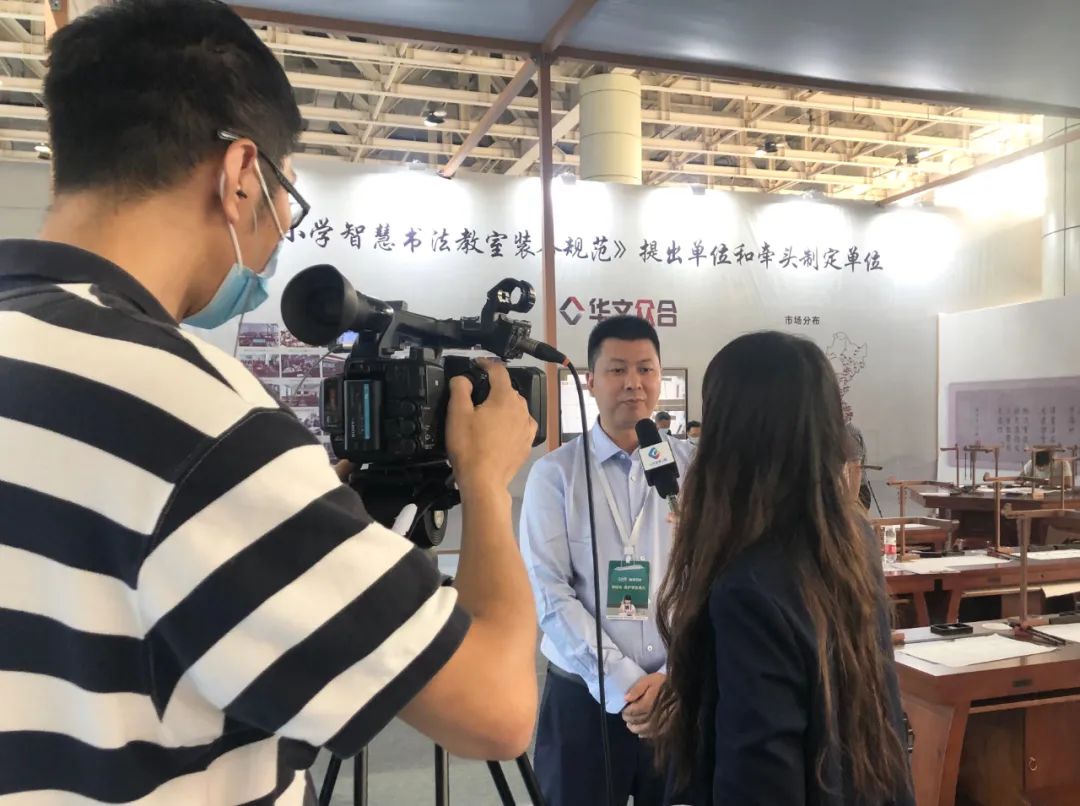 展會首日,華文眾合副總裁陳方義先生在展會現(xiàn)場接受了山東教育電視臺、煙臺日報、大眾網(wǎng)等媒體的采訪,解答了關(guān)于華文眾合第六代智慧書法教室的產(chǎn)品亮點、應(yīng)用領(lǐng)域、用戶體驗、服務(wù)支持、未來智慧書法教室的發(fā)展趨勢等方面的問題。
