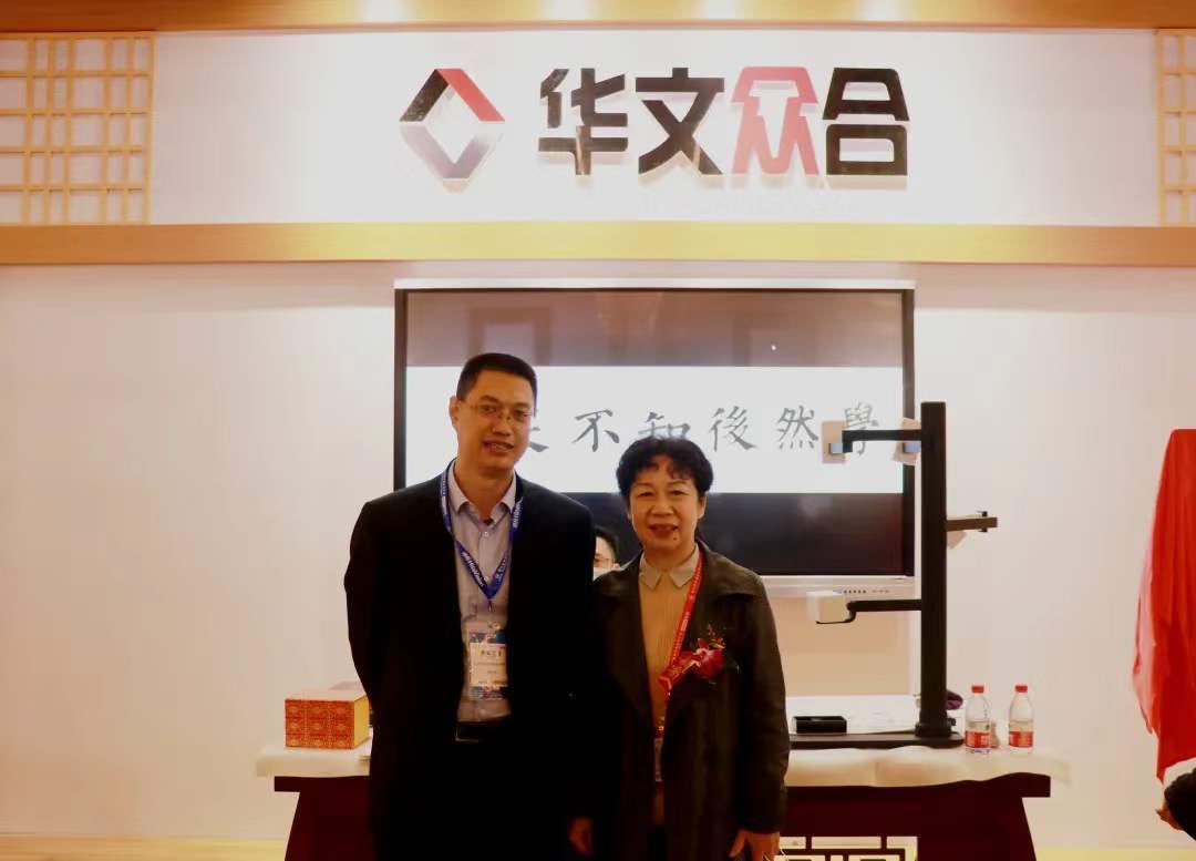 中國教育裝備行業協會副會長李興植、華文眾合董事長向大鳳合影