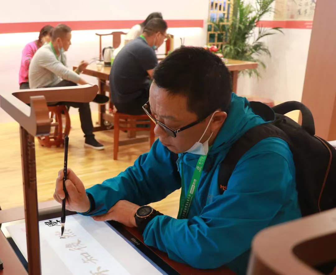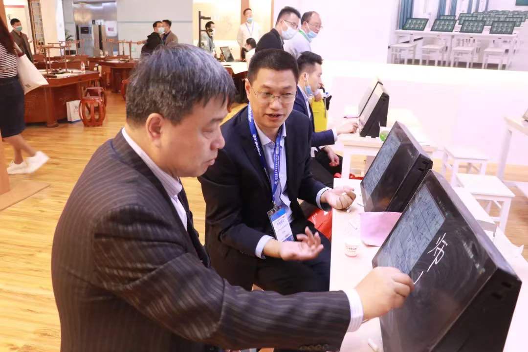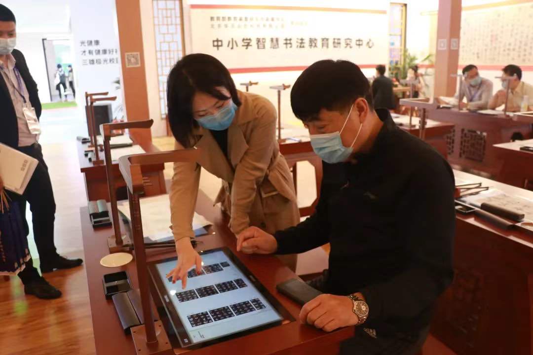 教育部關心下一代工作委員會常務副主任、中國教育裝備行業協會會長王富體驗華文眾合第七代智慧書法教室