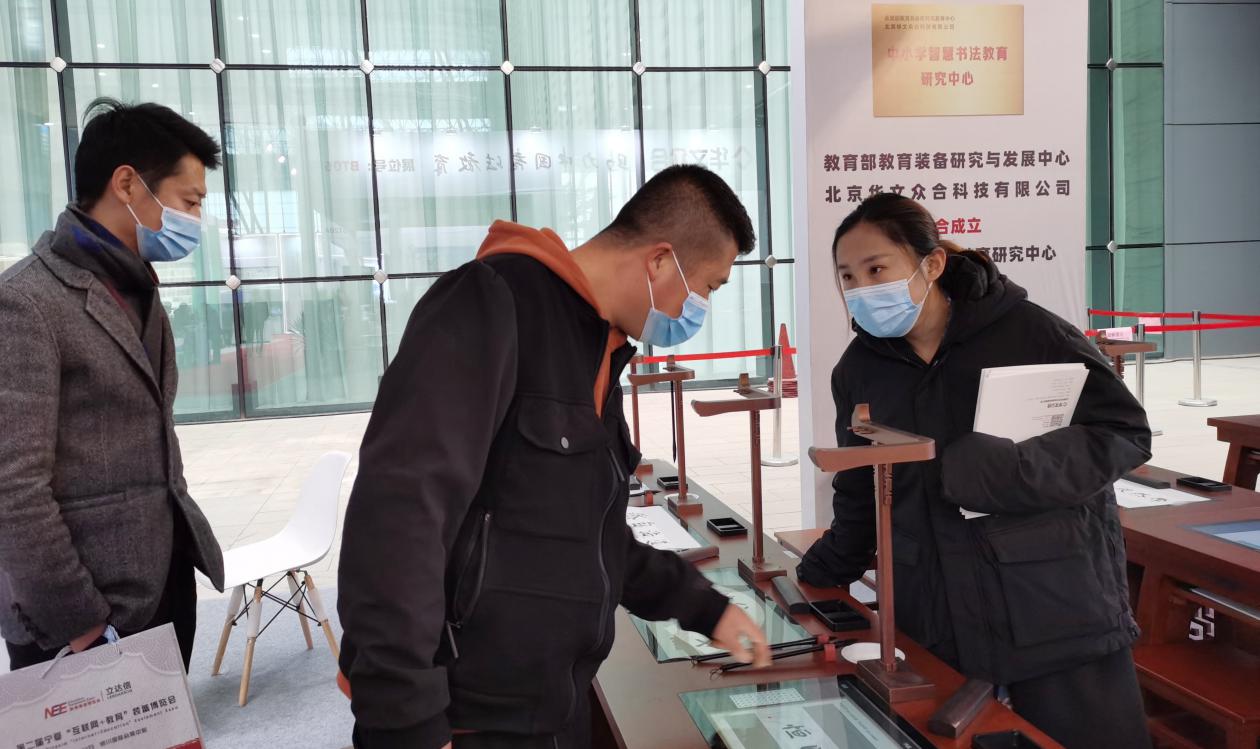 華文眾合最新推出的第七代智慧書法教室,首次在西部地區(qū)亮相,寧夏回族自治區(qū)財(cái)政廳馬處長(zhǎng)及寧夏教育裝備行業(yè)協(xié)會(huì)會(huì)長(zhǎng)黃樺親臨華文眾合展會(huì)參觀并與華文眾合副總裁陳方義進(jìn)行了親切的指導(dǎo)交流,寧夏教育裝備和校園風(fēng)險(xiǎn)管理中心主任侯慶偉也前來(lái)體驗(yàn)了首次亮相寧夏的第七代智慧書法教室。不少前來(lái)參展的朋友表示“早已聽說(shuō)過(guò)華文眾合第七代智慧書法教室的新概念,這次華文眾合終于來(lái)到寧夏銀川讓我們一睹新技術(shù)新風(fēng)采!