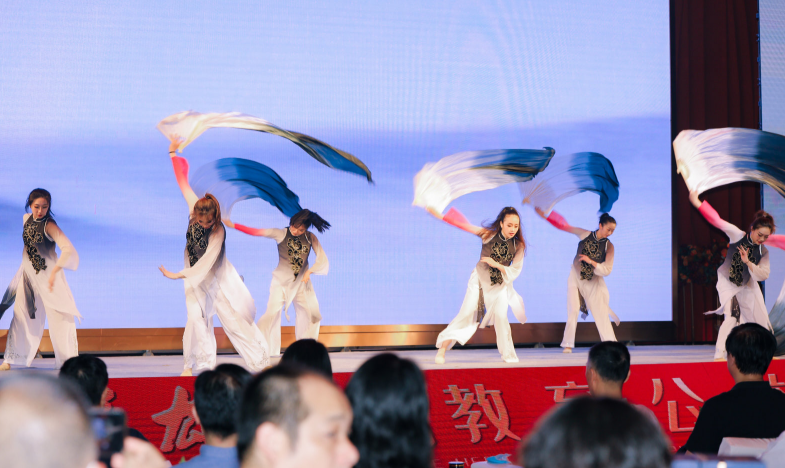 晚會現場,精彩節目連綿接續。武漢音樂學院舞蹈系的學生,用水墨丹青,黑白灰相間的綢扇,在強勁的古典舞風,展現《舞韻楚天》之恢宏,揚大氣磅礴瓊樓玉宇之氣勢,開啟視覺盛宴;著名朗誦藝術家吉雅瑞德一首由我國著名作家、詩人商成勇為本次教育公益晚會而創作的《傳薪者》,將全體觀眾帶入了中國5000年文化沉淀的詩詞世界,在現代誦唱中感受詩詞的優美與靈韻;中國國家畫院原副院長曾來德,中國國家畫院書法篆刻所所長魏廣君,北京華文眾合科技有限公司書畫研究院院長、中國國家畫院研究員高軍法三位書法大家用筆墨丹青現場創作,呈現了一場文化盛宴;書法進藏紀錄片《白瑪的心愿》,用寫實手法記錄了藏區孩子渴望用讀書改變命運的期盼,千千萬萬像小白瑪的藏區孩子們,將在華文眾合新型書法教育裝備的助力下夢想成真……