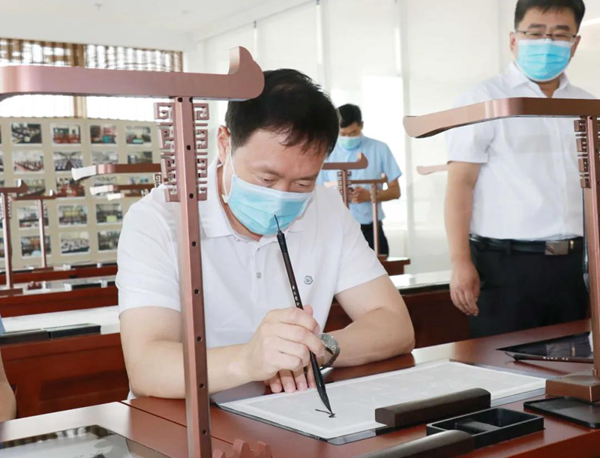 區(qū)委組織部、區(qū)委老干部局領(lǐng)導(dǎo)一行首先了解了我司的規(guī)劃和建設(shè)及近年來獲得榮譽(yù)及發(fā)明專利等情況,隨后在華文眾合總裁向大鳳和副總裁陳方義的陪同下,參觀了我司辦公環(huán)境和智慧書法教室展廳并親身在智慧書法教室進(jìn)行了最新第七代產(chǎn)品的體驗(yàn)及相關(guān)產(chǎn)品應(yīng)用情況的了解和咨詢。