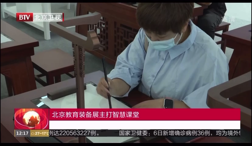 【在“智慧教育”展區,記者注意到,在“雙減”政策的大背景下,參展企業多以助力學校人才培養、提升教育質量為著力點。華文眾合副總裁陳方義告訴本報記者,借助科技為書法教育服務,通過場景技術讓網絡課堂達到“名師面對面”以及不同地域學生“天涯若同堂”的效果。通過人工智能技術實現筆尖跟蹤功能,讓學生能精準觀察老師運筆的過程。臨摹臺采用網絡供電技術,從根本上解決學生端用電安全的問題。智慧書法教室既注重技術的先進性,又注重教學的先進性�!�