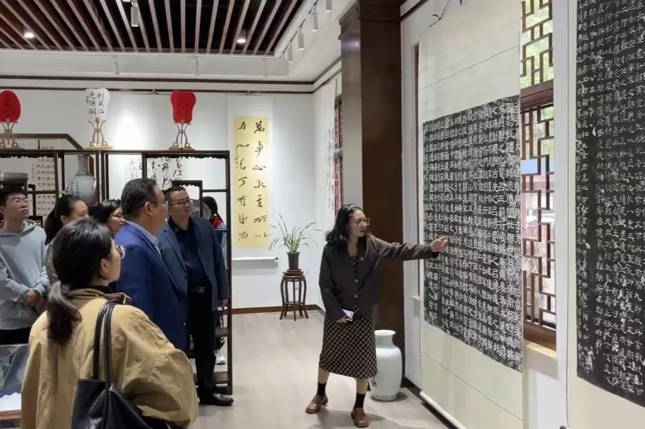 書法教學課結束后參會老師共同參觀了蘭花小學的蘭雅書院,蘭花小學以“蘭文化”為核心構建的校園文化。書法展館中除了豐富的書法作品外,還有拓印的碑帖原文,除此之外還有以書法為主題的藝術作品,展館內可謂琳瑯滿目,獲得參會老師的一致認可和贊揚。
