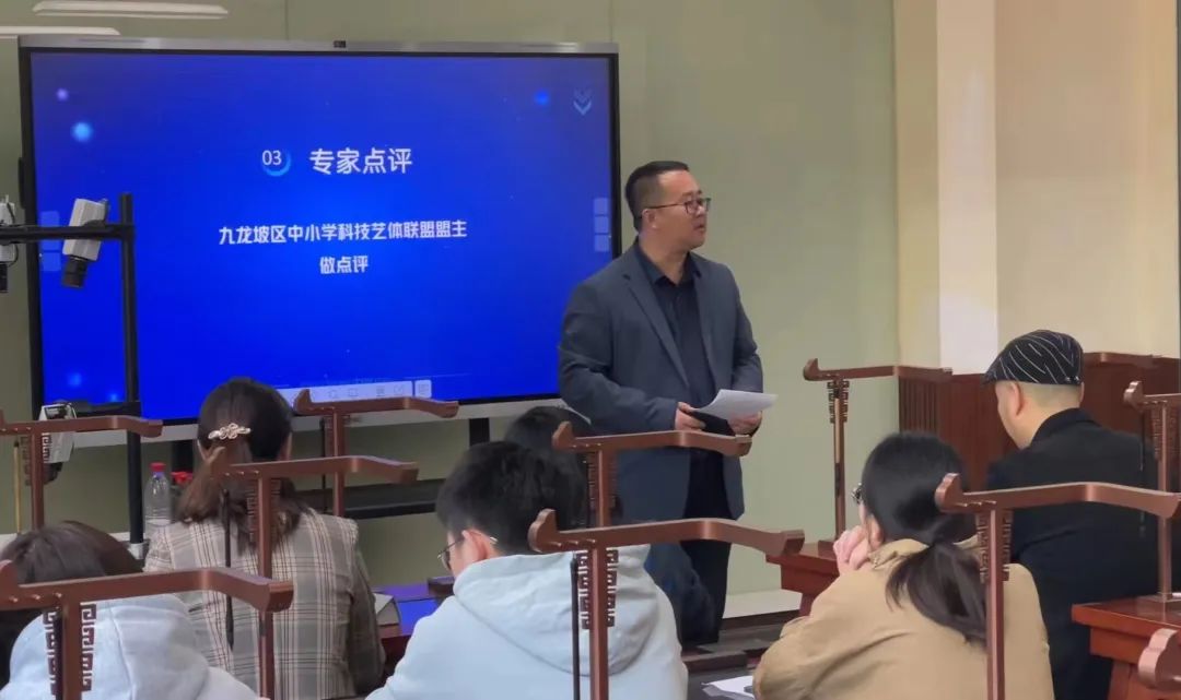 九龍坡區中小學科技藝體聯盟盟主、園區小學副校長趙承作做了現場點評,充分肯定了智慧書法的優點,用“智慧賦能書法教室”詮釋了智慧書法教室所帶來的便利性。