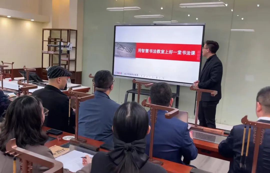大家圍繞如何開展書法教學、傳統書法教室與智慧書法教室的優缺點、書法課如何與其他學科融合、書法成果提煉與成果展示等進行了研討。