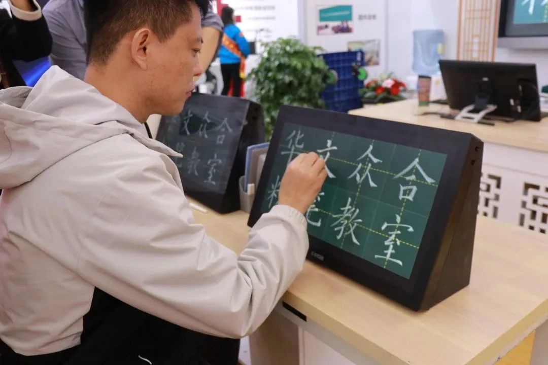 華文眾合智慧粉筆教室惹人注目,觀眾進(jìn)行體驗(yàn)