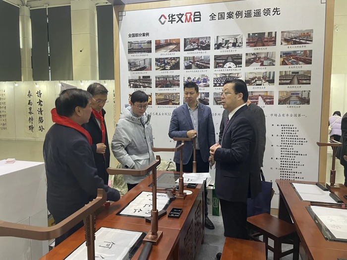 展會期間,眾多領導、教育界專家、學者蒞臨華文眾合展位調研指導,深入了解智慧書法教室,并給予高度評價。