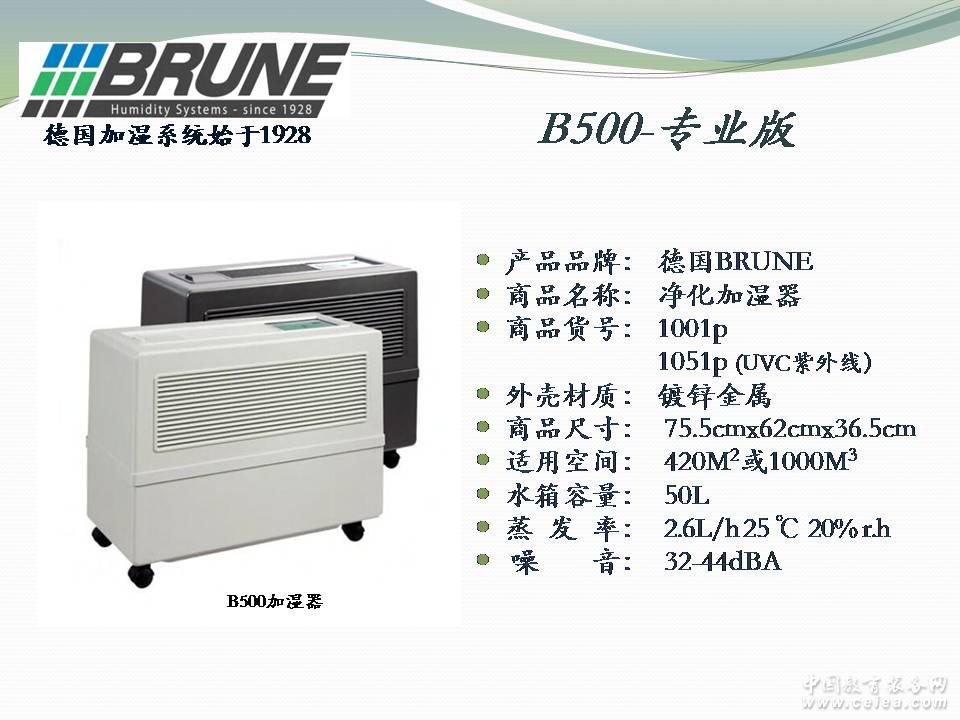 產品詳細介紹產品品牌: 德國BRUNE 商品名稱: 凈化加濕器 商品貨號: 1001p 1051p (UVC紫外線) 外殼材質: 鍍鋅金屬 商品尺寸: 75.5cmx62cmx36.5cm 適用空間: 420M2或1000M3 水箱容量: 50L 蒸 發 率: 2.6L/h 25 ℃ 20% r.h 噪 音: 32-44dBA |