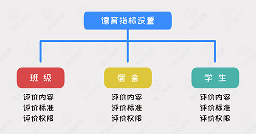 第一,支持德育管理指標(biāo)設(shè)置。不同的學(xué)校在辦學(xué)上擁有自身獨(dú)特的理念,對德育工作的評價(jià)指標(biāo)也不盡相同,系統(tǒng)滿足學(xué)校在德育工作中評價(jià)內(nèi)容、評價(jià)標(biāo)準(zhǔn)、評價(jià)權(quán)限等的靈活設(shè)置,使不同教師及部門間協(xié)同開展德育工作,有效保障評價(jià)機(jī)制的順利運(yùn)行。