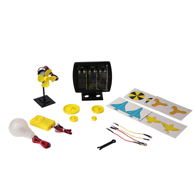 太陽能教學套裝是用于科普新能源與光電轉換原理的教學實驗器材。通過太陽能板將光能轉化為電能,可驅動小電機、小燈泡等負載,直觀演示太陽能發電過程與應用,幫助學生認識清潔能源、學習基礎電路與能量轉化知識,適合課堂教學與科技實踐使用。