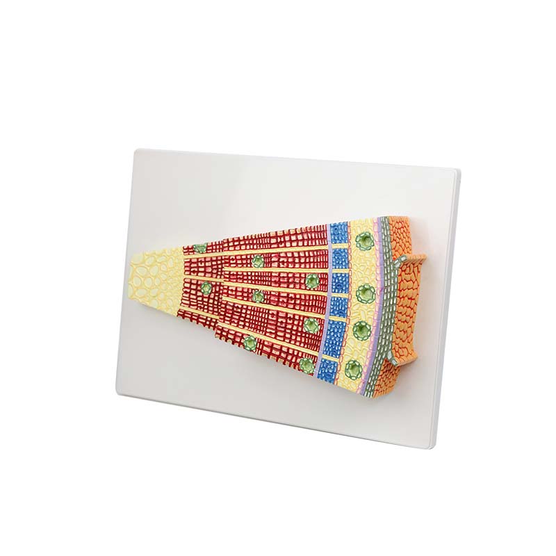 本模型展示裸子植物莖的橫切面與縱切面結構,清晰呈現表皮、皮層、維管組織、木質部、韌皮部、髓及樹脂道等特征,突出其木質部以管胞為主、無典型導管的結構特點,直觀體現裸子植物莖的解剖構造,適用于植物學課堂教學與科普展示。