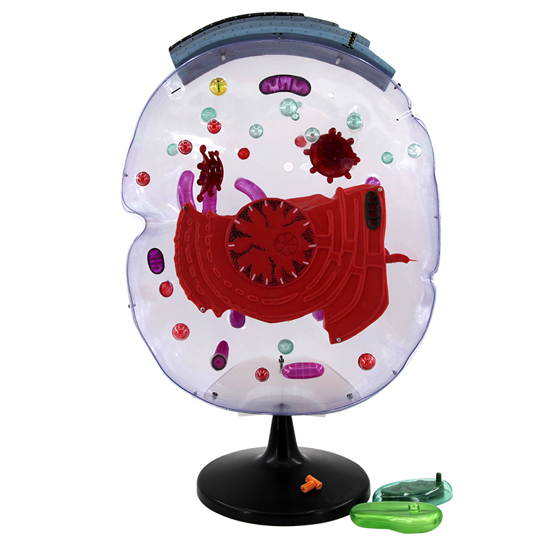 本模型精細展示細胞在電子顯微鏡下的亞顯微結構,包含細胞膜、細胞核、線粒體、葉綠體、內質網、高爾基體、核糖體、溶酶體、液泡等典型細胞器,清晰呈現各結構形態與分布,直觀對比動植物細胞差異,適用于中學及高校生物課堂教學與分子細胞學科普演示。