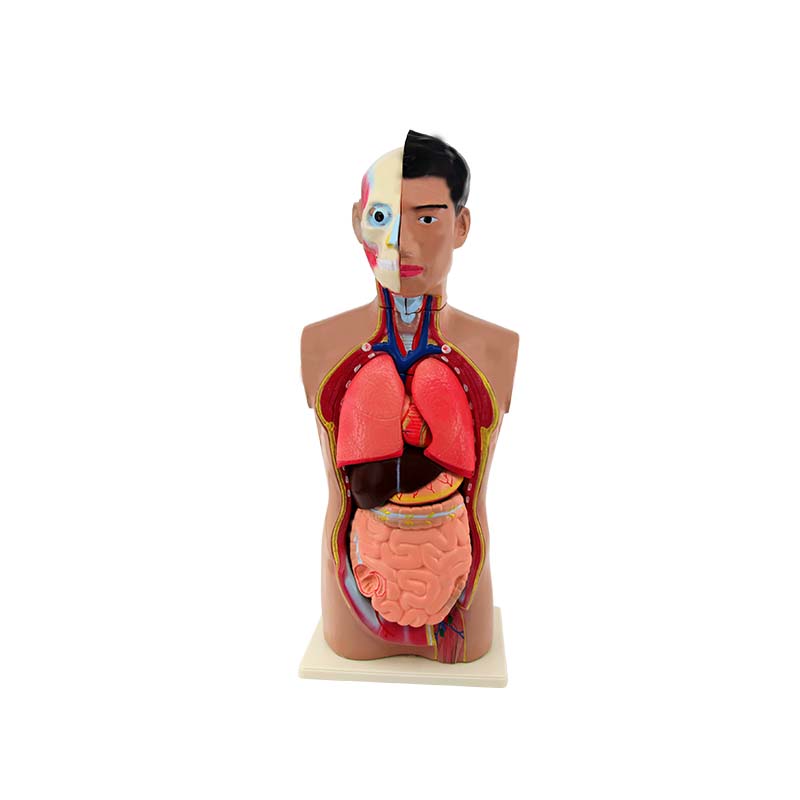 人體軀干模型清晰展示人體胸腹腔內部結構,包含心、肝、脾、肺、腎、胃、腸等主要內臟器官,直觀呈現各器官形態、位置及相互關系,可拆分觀察,結構標準、標識清晰,適用于中小學及醫學院校教學、醫學科普與臨床演示使用。