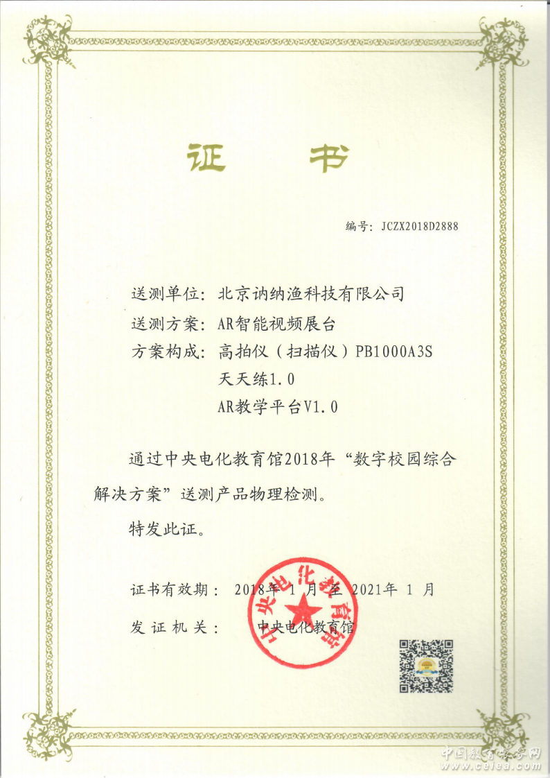 4、產品獲2018年中央電教館檢測合格唯一AR產品。