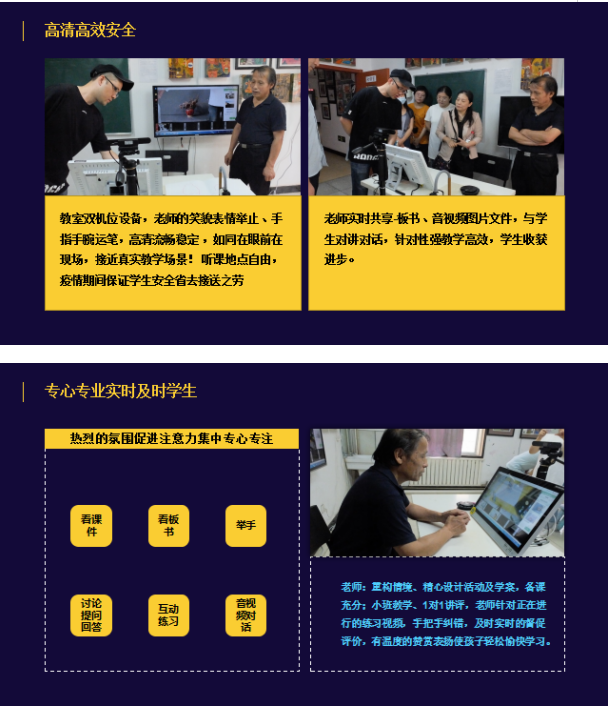 | 擁有自主開發的系列產品,涉及中國傳統文化書畫教室、老師成長和提升的教研產品、增賦減負備授課工具、提升優質資源均衡的結對課堂。自主研發產品:課堂評價-愛評課、美術教絡系統-藝學寶、數字臨摹書法教室-藝學寶、互動結對課堂、名師專遞課堂。配套硬件產品:藝板繪畫屏、藝學寶書法臨摹全貼合屏,產品優勢:數據采集與運用、互聯網+等創新運用在教學和教研,助力英音美薄弱學科的師資水平提升和名師課堂發揮普惠作用。 |