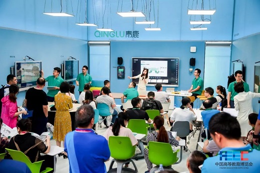 第53屆高等教育博覽會于昨日開幕。展會第二天,青鹿展位(4E02)依然人頭攢動。高顏值的展位、超高的人氣在高博會官方直播的眾多照片中也非常亮眼。