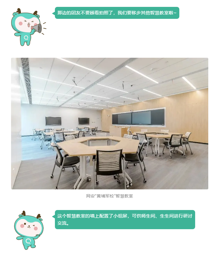 網(wǎng)安“黃埔軍校”內(nèi)的智慧教室綜合運(yùn)用多媒體、物聯(lián)網(wǎng)和云計(jì)算技術(shù),在教室里,一鍵開機(jī)、高清錄播、無線投屏、自由擺放桌椅……科技改變課堂,支持開展小班教學(xué)、互動(dòng)式教學(xué)及翻轉(zhuǎn)課堂,學(xué)生可及時(shí)在課堂上互動(dòng)、討論、交流。