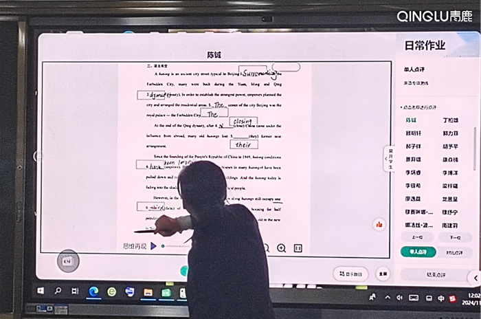 其中,英語課上,教師使用青鹿智慧紙筆系統下發導學案,實時查看學生預習成果,精準定位薄弱點,實時講評;借助“學生演示”功能,課堂同步呈現書寫筆跡,直觀分析語法掌握情況。
