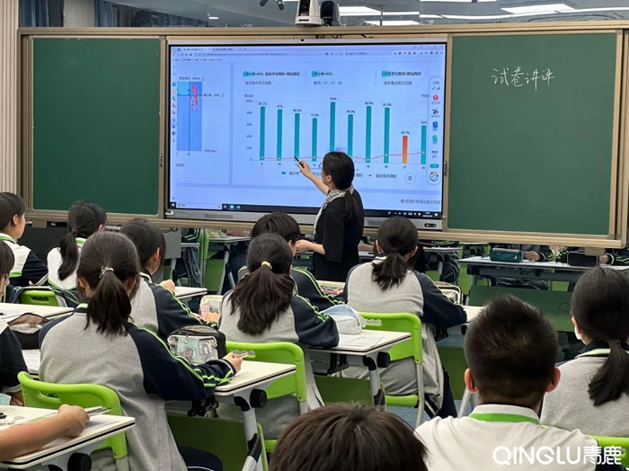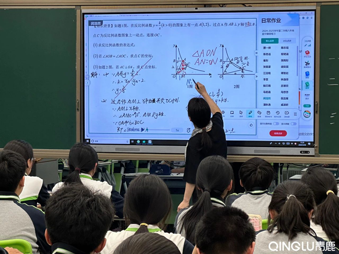 活動(dòng)現(xiàn)場(chǎng),數(shù)學(xué)組學(xué)科帶頭人沈秋萍老師運(yùn)用青鹿智慧紙筆技術(shù)開展“試卷分析課”。整堂課以“整體思想”為引領(lǐng),層層深入剖析分式混合運(yùn)算與分式方程應(yīng)用兩大核心知識(shí)點(diǎn),并巧妙引出反比例函數(shù)意義的理解,展現(xiàn)出清晰的知識(shí)脈絡(luò)與思維進(jìn)階路徑。