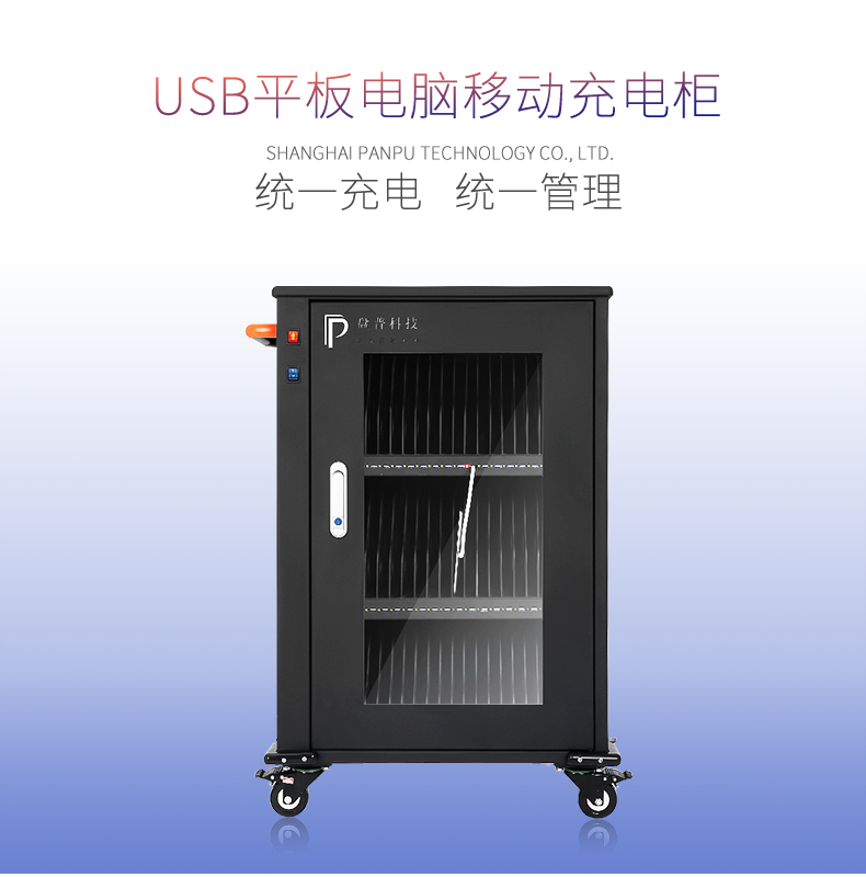 PJ-E60平板充電柜詳細參數: 1、1、產品規格:628*370*996(長寬高)無消毒燈 628*370*1150(長寬高)含消毒燈; 2、適用場所:學校教學、公司洽談、酒店會議、機場服務; 3、兼容系統:IOS蘋果/Android安卓,可容納設備數量60臺平板,具有移動、管理、儲存、溫控。前置USB端口5V/2.1A直流快速充電口,免適配器,配紅色/白色長度300mm數據線,避免長亂繁瑣; 4、設備每層安裝紫外線消毒燈,可消除觸摸平板時留下的細菌螨蟲,使充電后設備更衛生潔凈,保護師生使用時的健康。 5、前門是連桿防盜單開門;配有大面積高透亞克力板,設備在充電同時可清楚觀察充電狀態。側艙為電源管控區域,可由專業管理人員控制; 6、電源管控區內有微電腦溫控設備,每設備充電層配備散熱風扇,時刻感應溫度變化,溫度達到預定值時自動啟動工作狀態,保證設備在安全環境中運行; 7、柜體采用2.0mm/1.5mm鈑金結構,整體采用經典黑色;底部四邊安裝弧形防撞角,力學緩降理念,有效緩解外力的沖擊; 8、智能識別IC芯片,能智能識別充電設備并分配所需電流,每路均有過流、過載、短路、漏電保護,每口采用獨立供電,穩定、高效,且每口獨立具備智能LED轉換燈功能。紅燈:充電狀態中,綠燈:充滿/未連接; 9、配備4個3寸雙剎車聚氨酯橡膠超靜音萬向輪,在靈活移動的同時更安靜。左上側有ABS工程圓角把手,有效防止磕碰; 10、三層分艙式設計,每層20個USB充電插口,充電有序更安全; 11、后配有≥2路備用卡入式電源接口,便于連接其他電器設備(如教學所用的筆記本等),讓教學便捷更高效; |