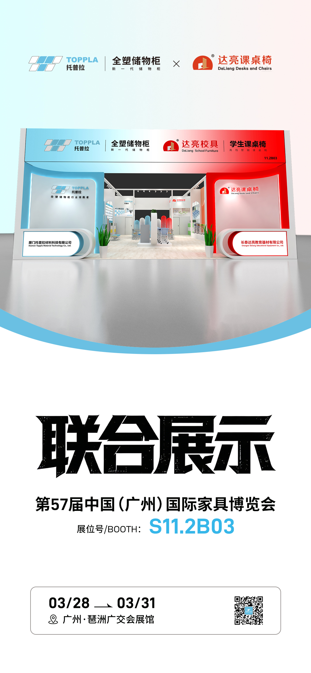 盛會正在進行中,誠邀各位伙伴蒞臨廣州·琶洲廣交會展館 CIFF 展會S11.2B03現場,親臨托普拉與達亮聯合展位,實地品鑒全塑智能儲物方案,體驗“教室標準化”范本,共話空間升級新可能。
